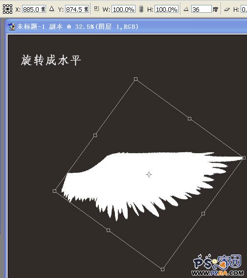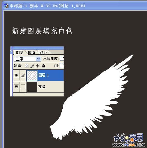 最終效果: 教程: 1、使用 路徑 繪制翅膀的基本輪廓 2、新建 圖層 填充白色 3、旋轉成水平 副標題 最后加入人物圖片合成,得到最終效果