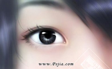 6、新建圖層,用畫筆選擇一些漂亮的顏色畫出虹膜、反光,配合加深、減淡工具處理明暗,再用涂抹工具涂出中間最黑亮的瞳孔`我又涂爛了,將就一下好了。