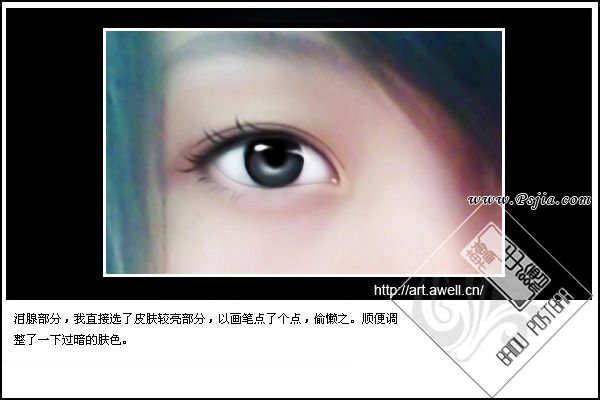 10、淚腺的部分,我直接選了皮膚較亮部分,以畫筆點了個點,偷懶之。順便調整了一下過暗的膚色。