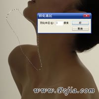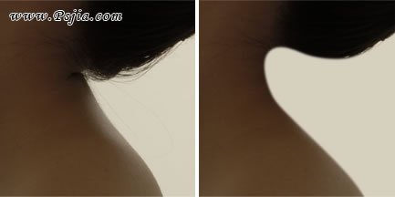 具體操作:使用“鋼筆工具”選擇出脖子和下巴部分的輪廓,使用快捷鍵“Ctrl+Enter”將路徑轉換為選區,并進行適當的液化處理(這里的液化數值為1像素),執行“濾鏡”菜單中的“液化”命令,將多余輪廓向內側進行液化處理。