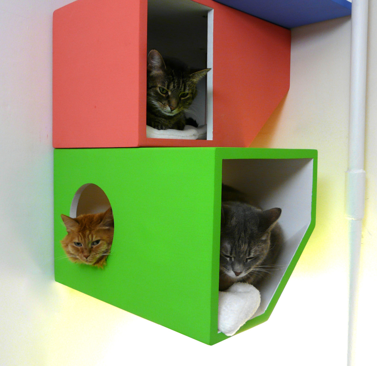 房子設計用于安裝在墻上,這種安裝給予主人一點額外的空間。讓它們有安全的地方睡午覺,狗和孩子不能夠到它們。
